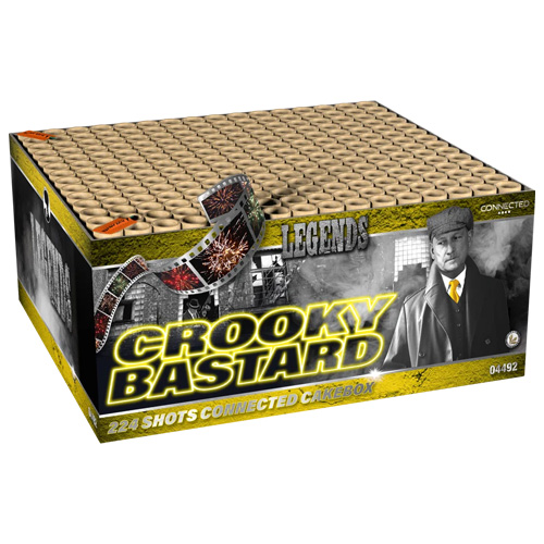 224 Schuss Verbund Feuerwerk! Crooky Bastard – Kriminell geil! Diese Bastard-Box hat ein super Timing. Schöner Aufbau bis zum Finale. Messerscharfe Salven, die in rasantem Tempo aufeinander folgen. Und das alles in High-End-Qualität!