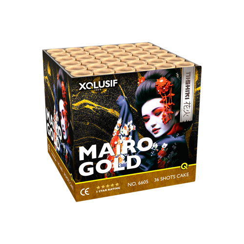 Dieser 36 Schuss Cake aus der Nishiki-Linie unserer XQlusif Reihe in von höchster Qualität und lässt wunderschöne tiefgoldene falling Flowercrowns mit Nishiki-Neon-Dahlien den Himmel erstrahlen. Ein atemberaubendes Spektakel für den Enthusiasten!